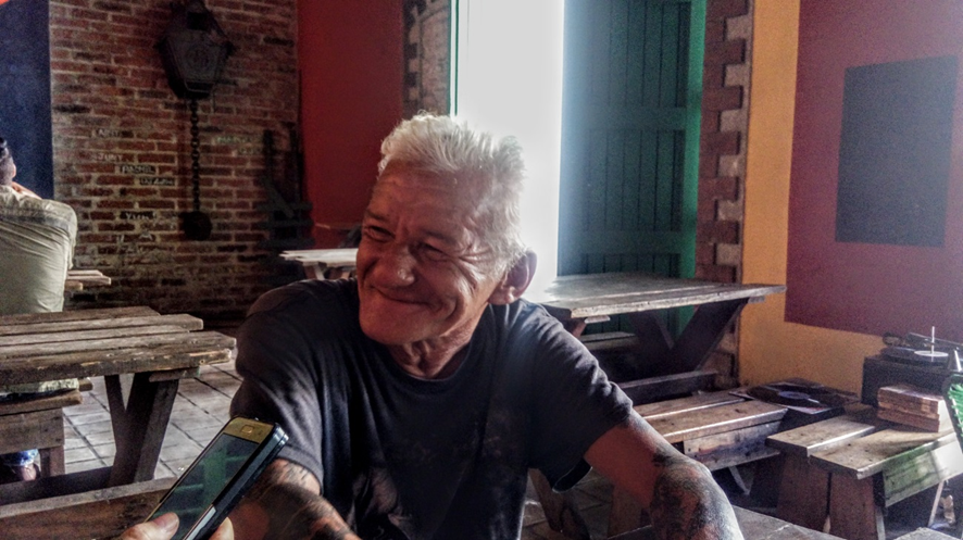 «La primera vez que supe del Mejunje fue en los años 80. Por ese tiempo radicaba en el patio de la Biblioteca (todavía no era en el lugar que conocemos hoy) y era una onda como de Café Cantante, con un buen ambiente. Me colé para allá adentro y me gustó porque no era una onda farandulera, sino que la mayoría de las personas que iban eran artistas. Era otra talla. Ahí pedí una guitarra y descargué, y después de eso seguí yendo. Y hasta los días de hoy, esta es mi casa, brother. Y no es fácil hacer otro en otro lugar, porque eso lleva muchas cosas: lleva la gente, lleva que sea Santa Clara. (Y mientras se seca las lágrimas) Amo mi ciudad. This is my hometown«.
