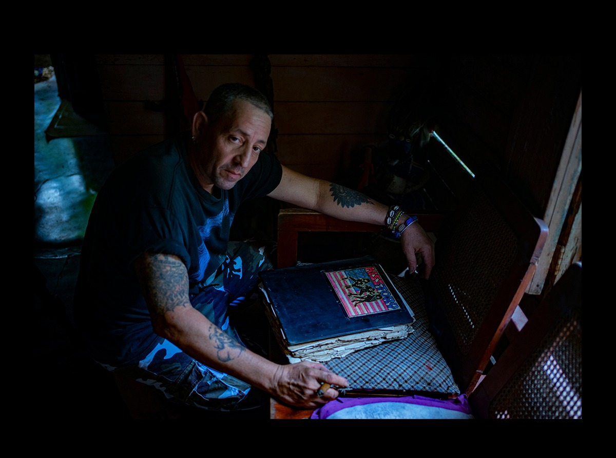 «Aquí en Holguín nos sentábamos en el parque Calixto García, en el banco de los rockeros, y conectábamos las grabadoras al poste de la luz para oír música. Mi mejor época fue la vida en la frikandá, lejos de lo material. Aunque eso sí, siempre cuidé mucho mi imagen. Íbamos al campismo con botas rusas, los t-shirts anchos y los pantalones tubos deshilachados con un peine. Usábamos las mochilas de las caretas antigás y las llenábamos de tachuelas y banderas de Inglaterra, y eso trajo buenas broncas con los boinas rojas. Yo todavía me visto así».