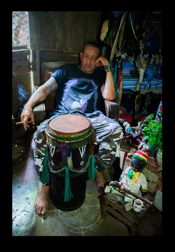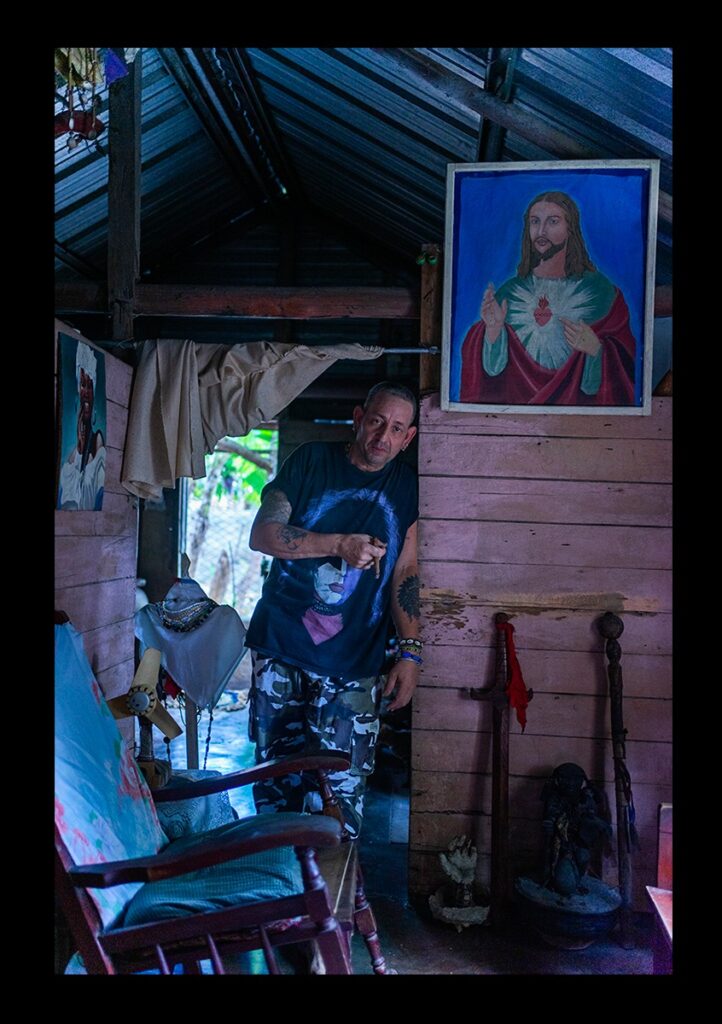Cuando puse mis ojos en aquel lugar, me pareció estar asomada a un cofre lleno de riquezas con un envoltorio humilde. Imágenes religiosas por todas partes, desde un Sagrado Corazón hasta elementos de la religión africana y una mujer que en el pequeño portal de la casa estaba siendo consultada por Luis, quien a su vez llevaba puesto un t-shirt de la banda estadounidense de rock, KISS.