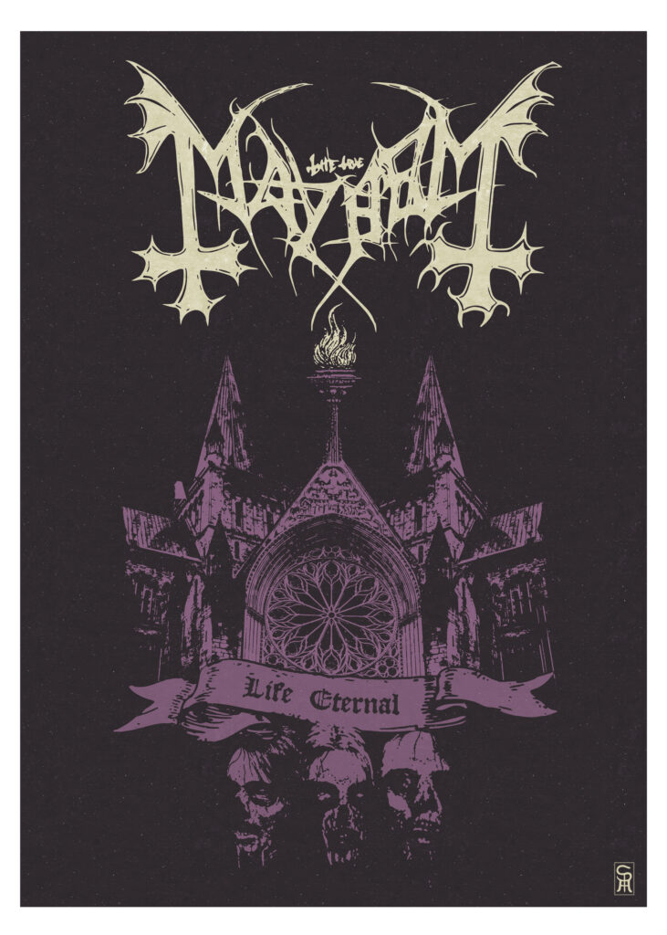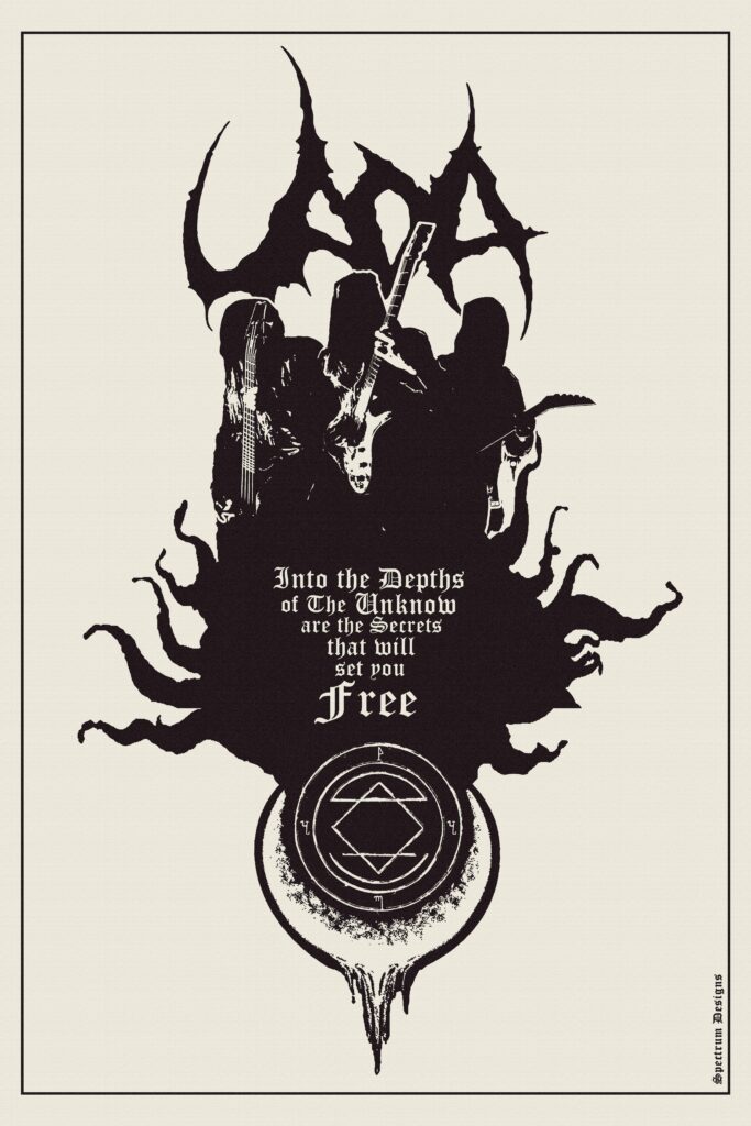 Los primeros pasos fueron de largas madrugadas de investigación tanto visual como técnica respecto al arte gráfico enfocado en el mundo del metal. Empecé imitando gráficas de viejos flyers y posters de bandas de mi agrado y convirtiéndolo en una especie de “poster tributo”. La primera gráfica que hice está dedicada a King Diamond y aún la conservo con gran orgullo.